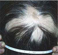 斑秃是一种自身免疫性的非瘢痕性脱发,俗称鬼剃头,用来形容短时间内,头发不明原因的大量脱落,形成边界整齐大小不等的脱发斑。以头部发生圆形、椭圆形、非炎症性、非瘢痕性的突然脱发,边界清晰,脱发区头皮光滑为特点。