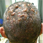 4、好发部位:好发于多毛部位,头皮、会阴、腋部、肛周及四肢伸侧。
